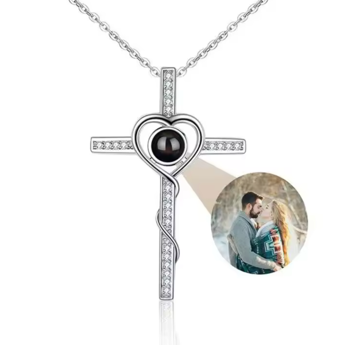 Collar personalizado con foto oculta que se revela al acercarlo a la luz o mirarlo a través del lente. Diseño elegante y discreto, ideal para llevar siempre contigo a esa persona especial.